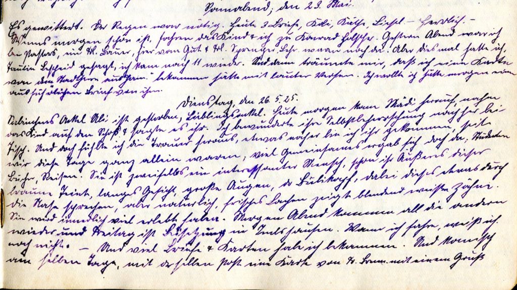 Unten wohnen die jungen Leute. Die Frau, zart und lieblich, mit dem Kind auf dem Arm, erschien mir so anmutig. Sie ist übrigens eine Schwester von Dr. Bommentsch. Ihr Mann, der junge Ehemann, ist sehr gewandt im Erzählen und Unterhalten.