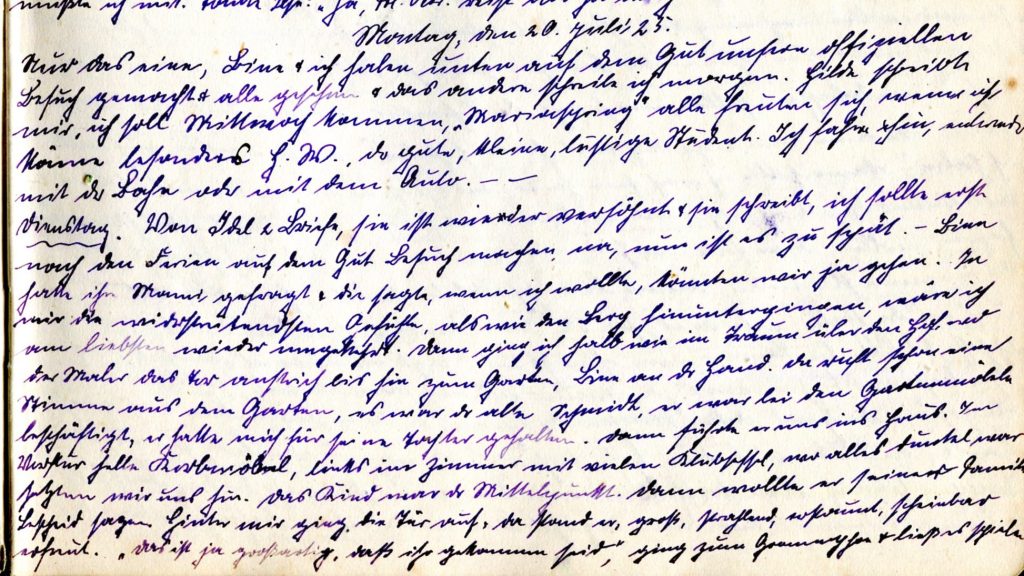 Von Idel kamen zwei Briefe, sie ist wieder versöhnt. Sie schreibt, ich sollte erst nach den Ferien auf dem Gut Besuch machen. Na, nun ist es zu spät.
