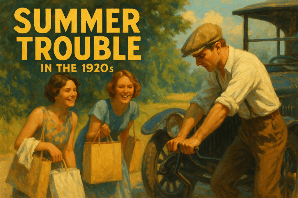 Aber vorher hatten wir drei noch recht nette Erlebnisse. Wir hielten vor der Weender Straße um jeder für sich, das heißt ich mit der Schwester, Besorgungen zu machen. Nach zwanzig Minuten trafen wir uns beim Auto. Lotte und ich saßen beide schon drin, während er ankurbelte, aber… Was sollte das? Er dreht und dreht mit der Vehemenz und Ausdauer, dass seine ganze Hand kaput wird. Und das Auto gibt keinen Ton von sich.