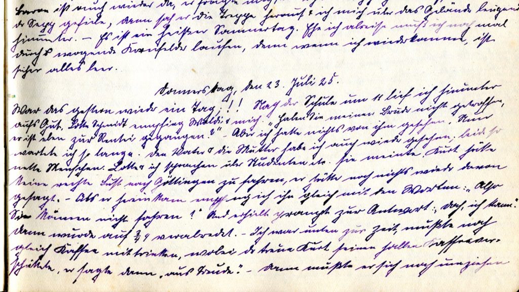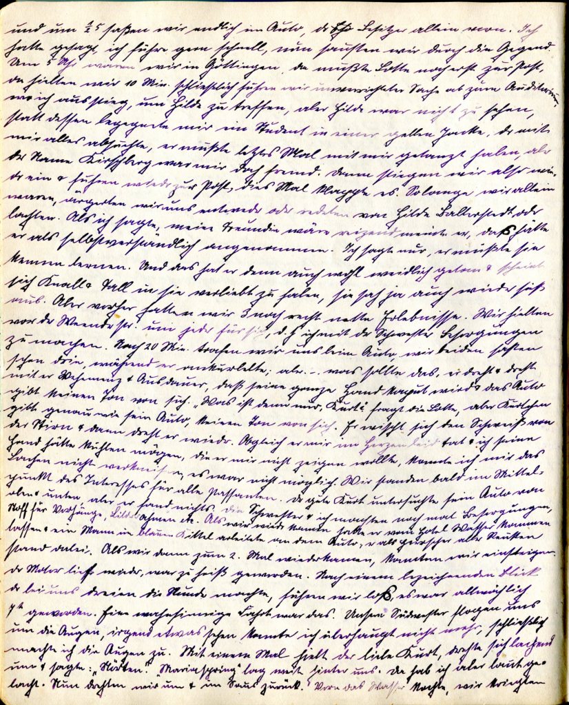 Aber ich hatte nichts von ihm gesehen. Nun wartete ich so lange. Den Vater und die Mutter habe ich auch wieder gesehen, beide so nette Menschen. Lotte und ich sprachen über Studenten, etc. Sie meinte Kurt fühlte keine rechte Lust nach Göttingen zu fahren, er hätte noch nichts wieder davon gesagt.