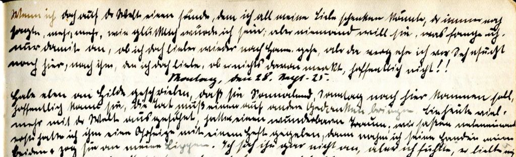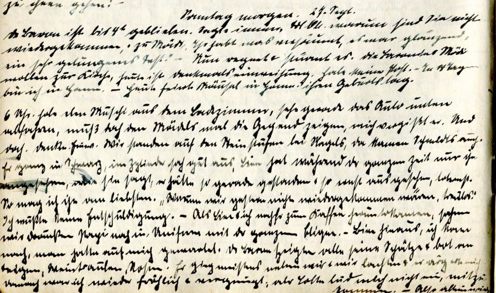 Nun regnet und stürmt es wieder. Die Baronin und Mädi wollen zur Kirche, heute ist die Einweihung des Denkmals. Ich habe keine Post.