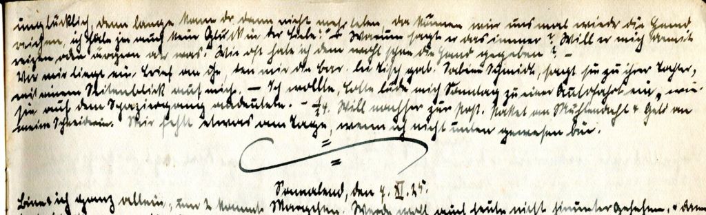 Gestern Abend war Sprengerchen hier. Welch Unterschied zwischen ihr und Lotte! Scheinbar wurde sie noch nie von einem Mann geliebt. Deshalb hat sie manchmal dieses leicht ins Perverse gehende,was ich nicht haben kann. Sonst ist sie ein lieber Mensch, aber ihr Strickerchen mag ich, glaube ich, doch noch lieber.