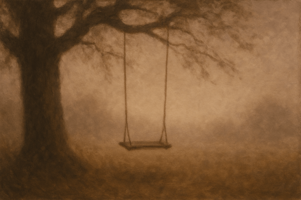 Ich machte mich eben mit Bine auf den Weg runter aufs Gut. Sie weinte, weil ich nicht mitwollte. Lotte kam von oben angelaufen und brachte uns ins Herrenzimmer. Er saß, im braunen Anzug, neben mir. Frau Schmidt brachte Apfelkuchen. Dann gingen wir hinaus zur Schaukel. Er sang die ganze Zeit: „Wenn du mich liebst, so wie ich dich.“