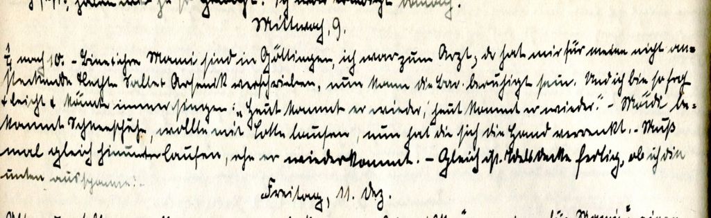 Viertel nach zehn. Bine und ihre Mami sind in Göttingen. Ich war beim Arzt. Der hat mir für meine nicht ansteckende Flechte Salbe und Arsenik verschrieben. Nun kann die Baronin beruhigt sein.