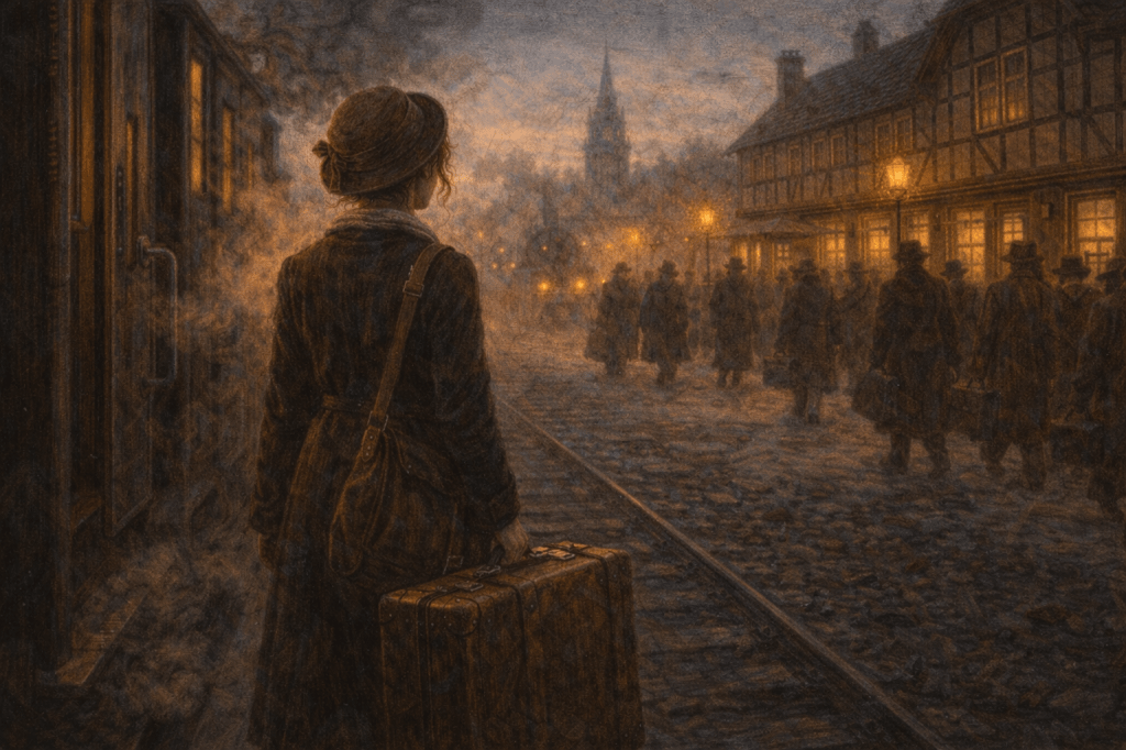 Adelebsen! Mit Müh und Not bekam ich meine Siebensachen heraus aus der Bahn. Da sauste Bine auf mich los, küsste mich, zog mich herunter, jubelte und gebärdete sich wie wahnsinnig. Mein Hut saß schief von dem Empfang. Kaum hatte ich Zeit, Taulin meinen Koffer zu geben, da hatte Bine mich schon wieder beim Kragen. Dann sah sie meinen „Vogelhut“ und rief mit überlauter Stimme, sodass die vielen Menschen auf dem Bahnsteig uns wie ein Weltwunder ansahen und laut lachten: „O, du hast ja einen Vogel. Vogel! Vogel!“