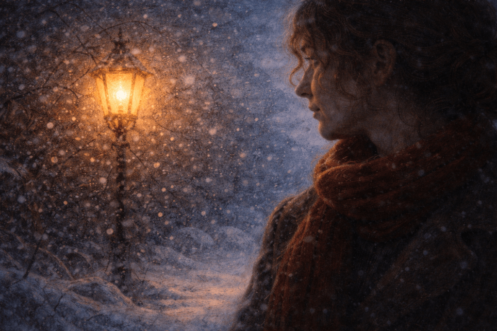 Die Bilder, die ich mitgebracht hatte, sah er sich schweigend an. Der Junge würde noch ordentlich! Und dabei schneit es noch immer, leise Flocken fallen.