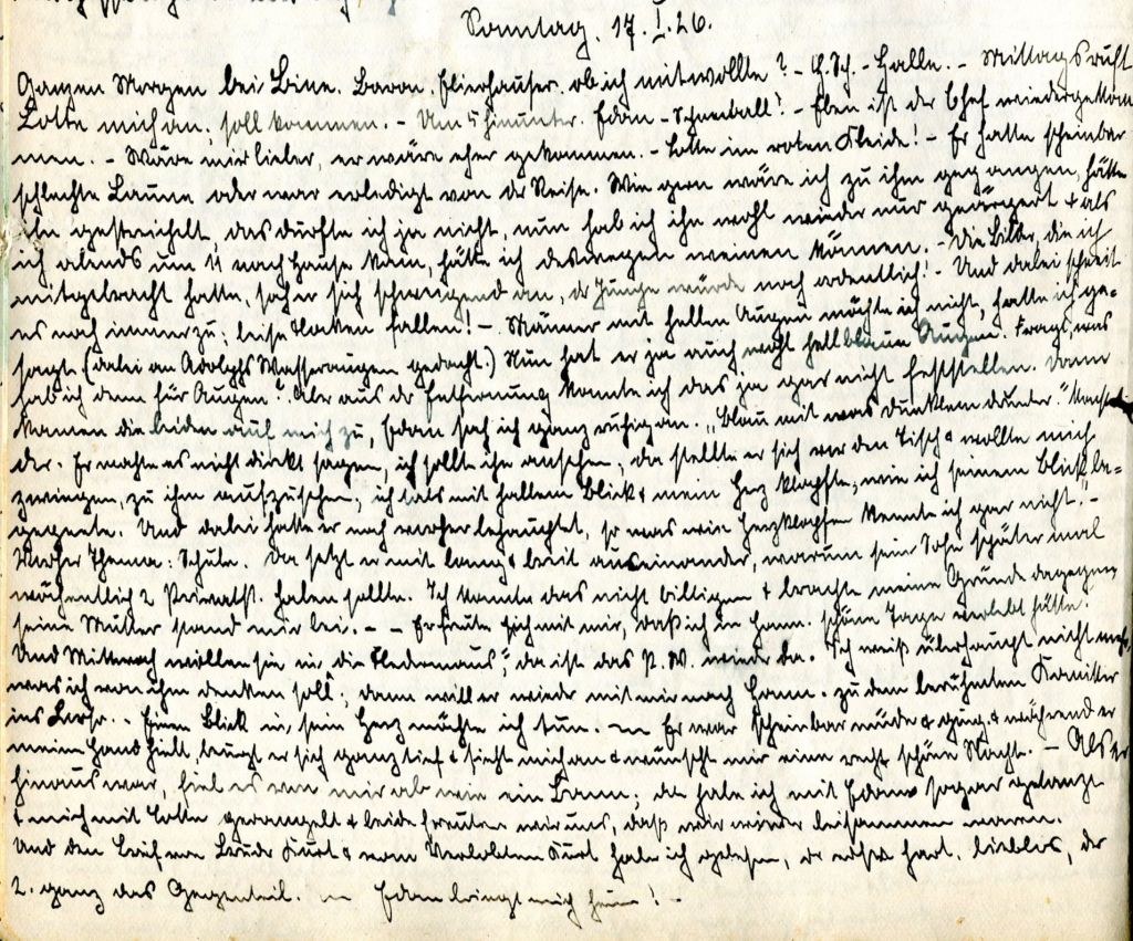 Er freute sich mit mir, dass ich in Hannover schöne Tage verlebt hatte. Und Mittwoch wollen sie in die „Fledermaus“, da ist das P. W. wieder da. Ich weiß nicht mehr, was ich von ihm denken soll. Dann will er wieder mit mir nach Hannover zu dem berühmten Komiker ins Lessing.