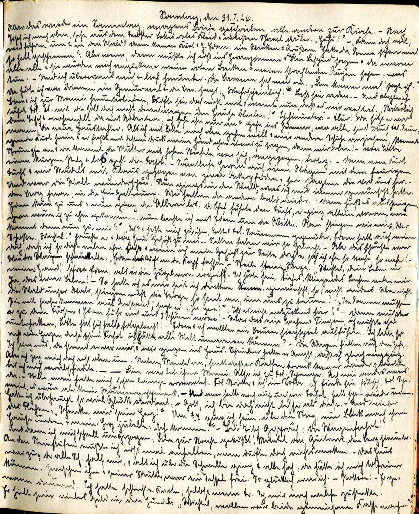 Ich ging hinunter. Flur! Da sitzt er vor mir, die neue Haustochter. Als ich mit Lotte nach oben gehen will, um andere Schuhe anzuziehen, kommt gerade Kurt herein und fasst mit festem Druck meine Hand, ohne ein Wort zu sagen. Dann gingen wir nach oben.