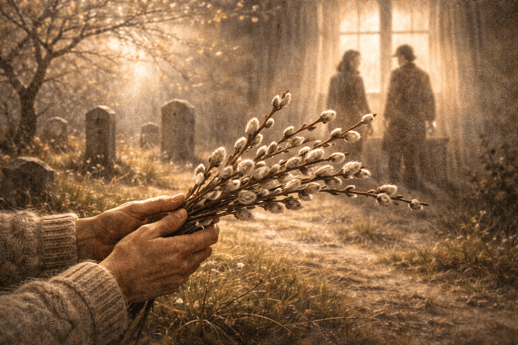 Heute Morgen war es wirklich ein warmer Frühlingsmorgen. Als wir zum Friedhof hinaufgingen, nahmen wir die ersten Kätzchen mit.