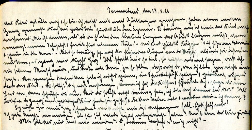 Idels Brief in der Hand (mein geliebtes Kind hatte sie geschrieben) und die Bine neben mir. Warum weinte ich dennoch? Ich möchte ihm mein Herz schenken und weiß nicht, wie ich’s anfangen soll. Gott, hilf mir!