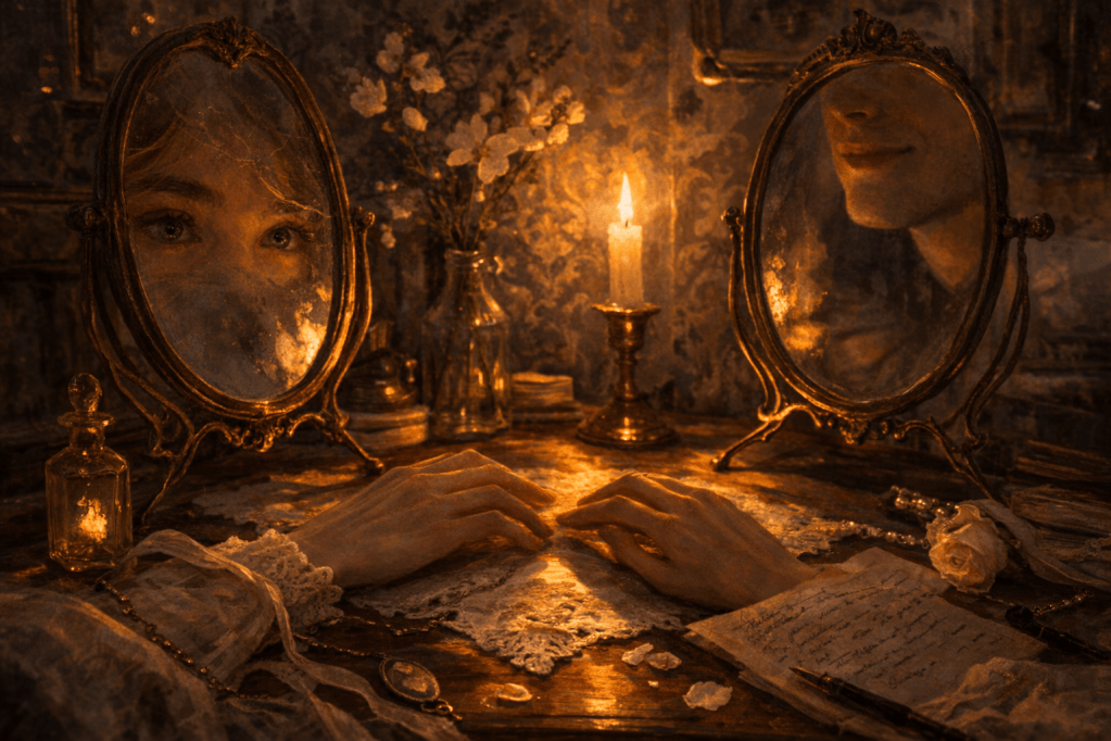 Wir schilderten einander unser Äußeres. Meine Schärfe seien meine Augen. Darum beneide sie mich. Ihr Schönstes sei ihr weicher Frauenmund. Und unsere Hände: ihre merkwürdig weißen, langen Finger.