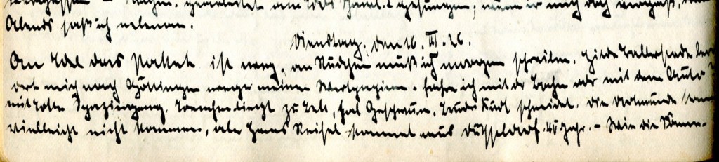 Später Kaffee bei Fräulein Sprenger. Zwei Kolleginnen waren da, beide ohne Mütter, und Fräulein Weihrauch. Sehr nette Menschen.