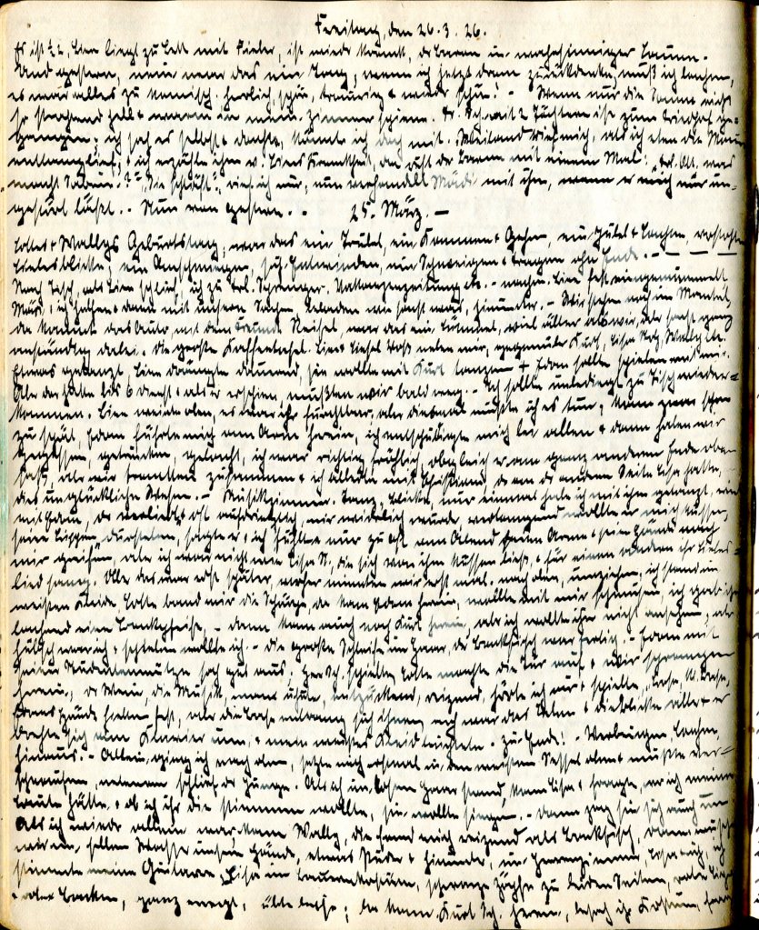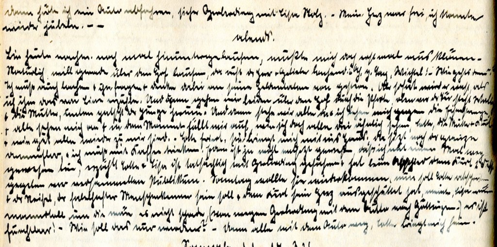 Weiland rief mich, als ich eben die Mauer entlanglief. Ich erzählte ihm von Bines Krankheit. Da rief der Baron plötzlich: „Fräulein Oltrogge, was macht Sabine?“