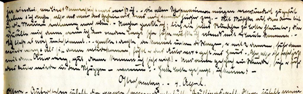 Hermann ist ganz anders geworden: rührend gut, versteht sich mit Idel glänzend. Alles ist zur Freude. Nur Adolph hat wieder kein Geld geschickt. Hermann bleibt über Ostern hier, fährt nicht nach Riethagen. Dann bin ich nicht allein. Wenn es Idel nur besser ginge.
